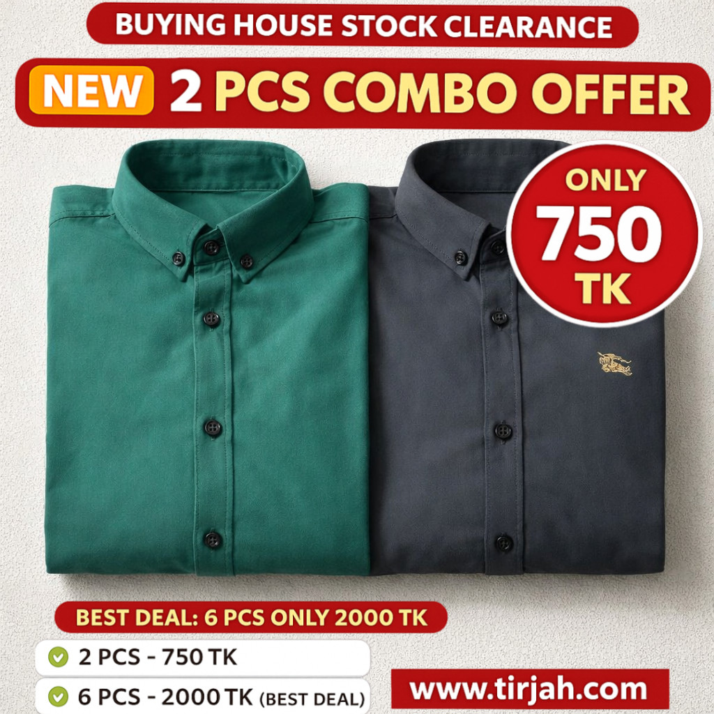 🔥 প্রিমিয়াম কোয়ালিটি (২ পিস) সলিড কালার ফুল স্লিভ শার্ট 🔥
