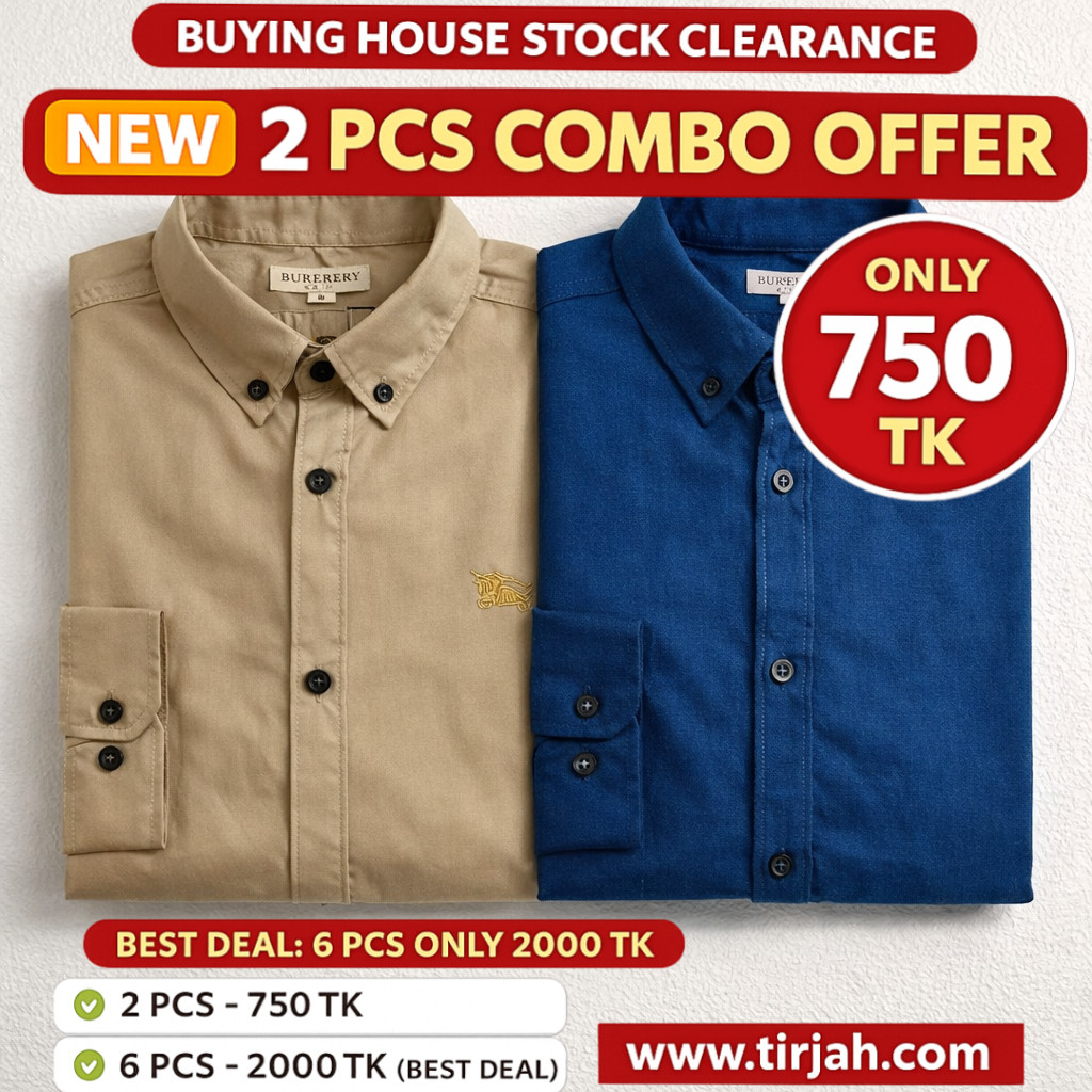 🔥 প্রিমিয়াম কোয়ালিটি (২ পিস) সলিড কালার ফুল স্লিভ শার্ট 🔥