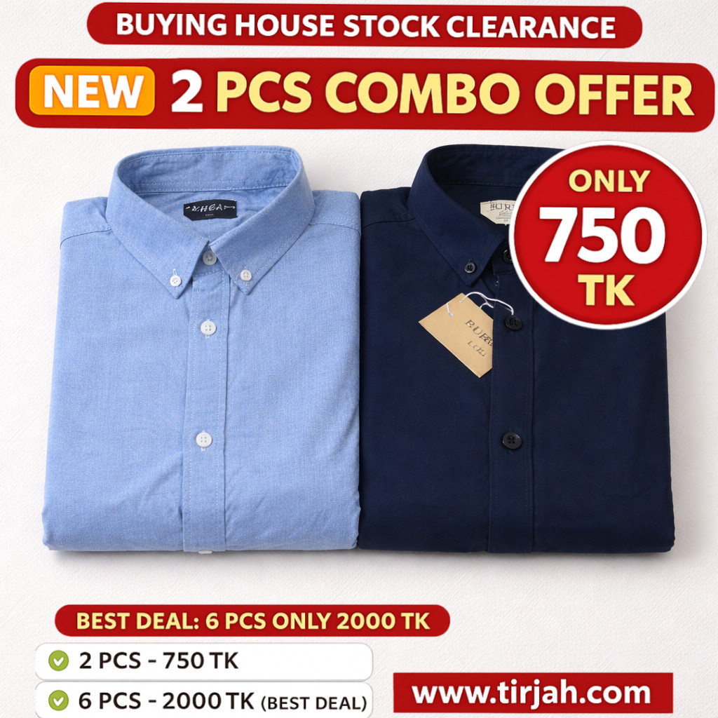 🔥 প্রিমিয়াম কোয়ালিটি (২ পিস) সলিড কালার ফুল স্লিভ শার্ট 🔥