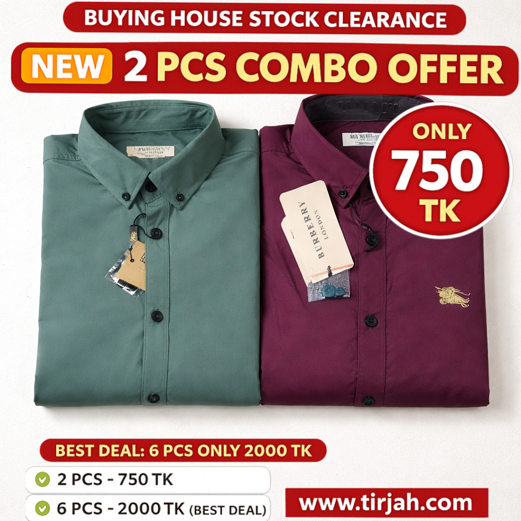 🔥 প্রিমিয়াম কোয়ালিটি (২ পিস) সলিড কালার ফুল স্লিভ শার্ট 🔥