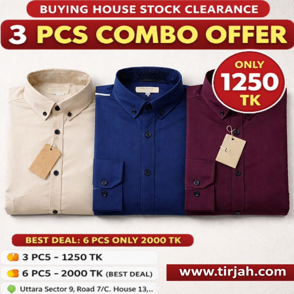 🔥 প্রিমিয়াম কোয়ালিটি (৩ পিস) সলিড কালার ফুল স্লিভ শার্ট 🔥