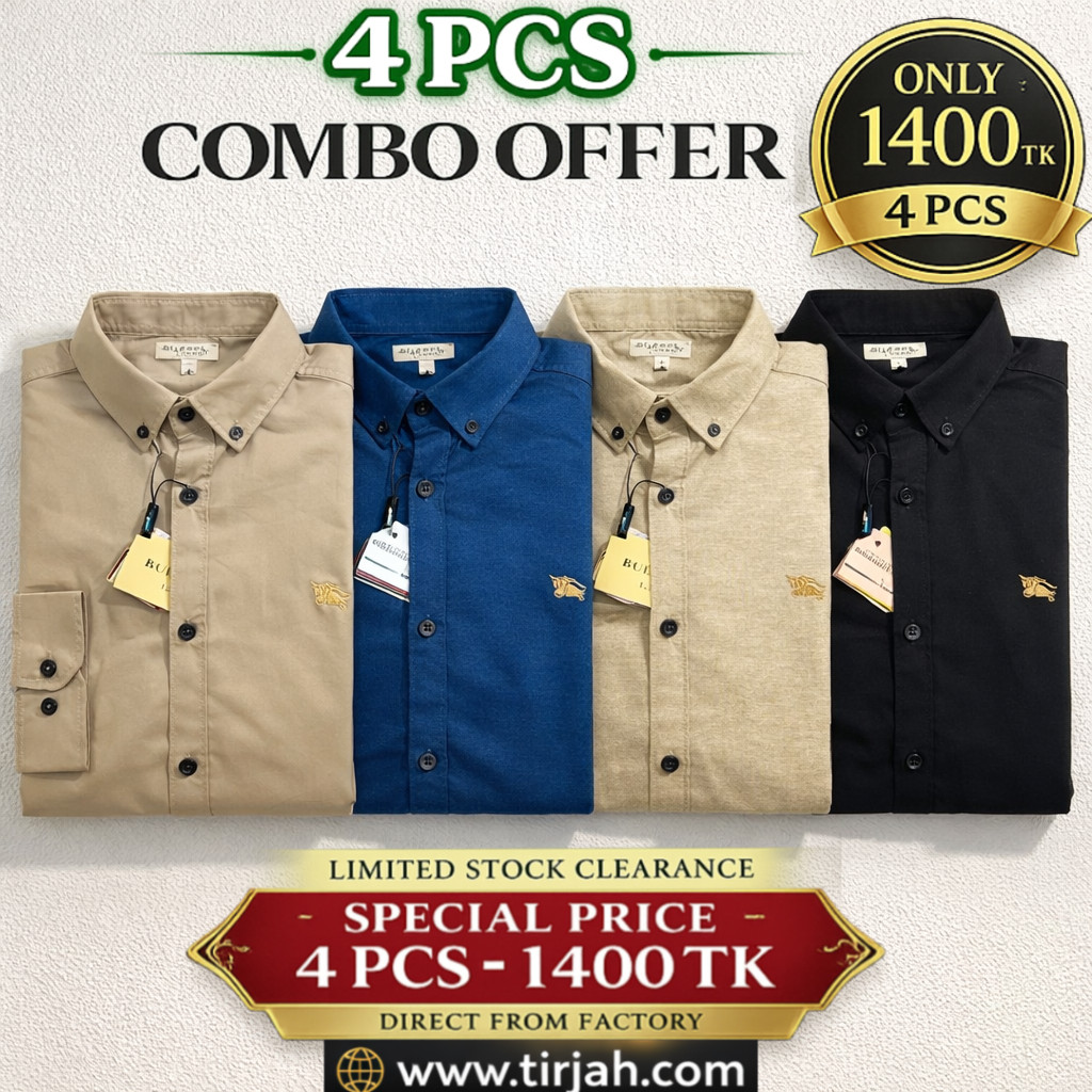 🔥 প্রিমিয়াম কোয়ালিটি (৪ পিস) সলিড কালার ফুল স্লিভ শার্ট 🔥
