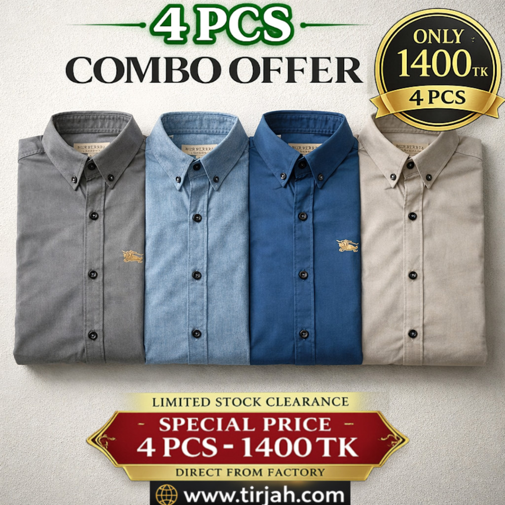 🔥 প্রিমিয়াম কোয়ালিটি (৪ পিস) সলিড কালার ফুল স্লিভ শার্ট 🔥