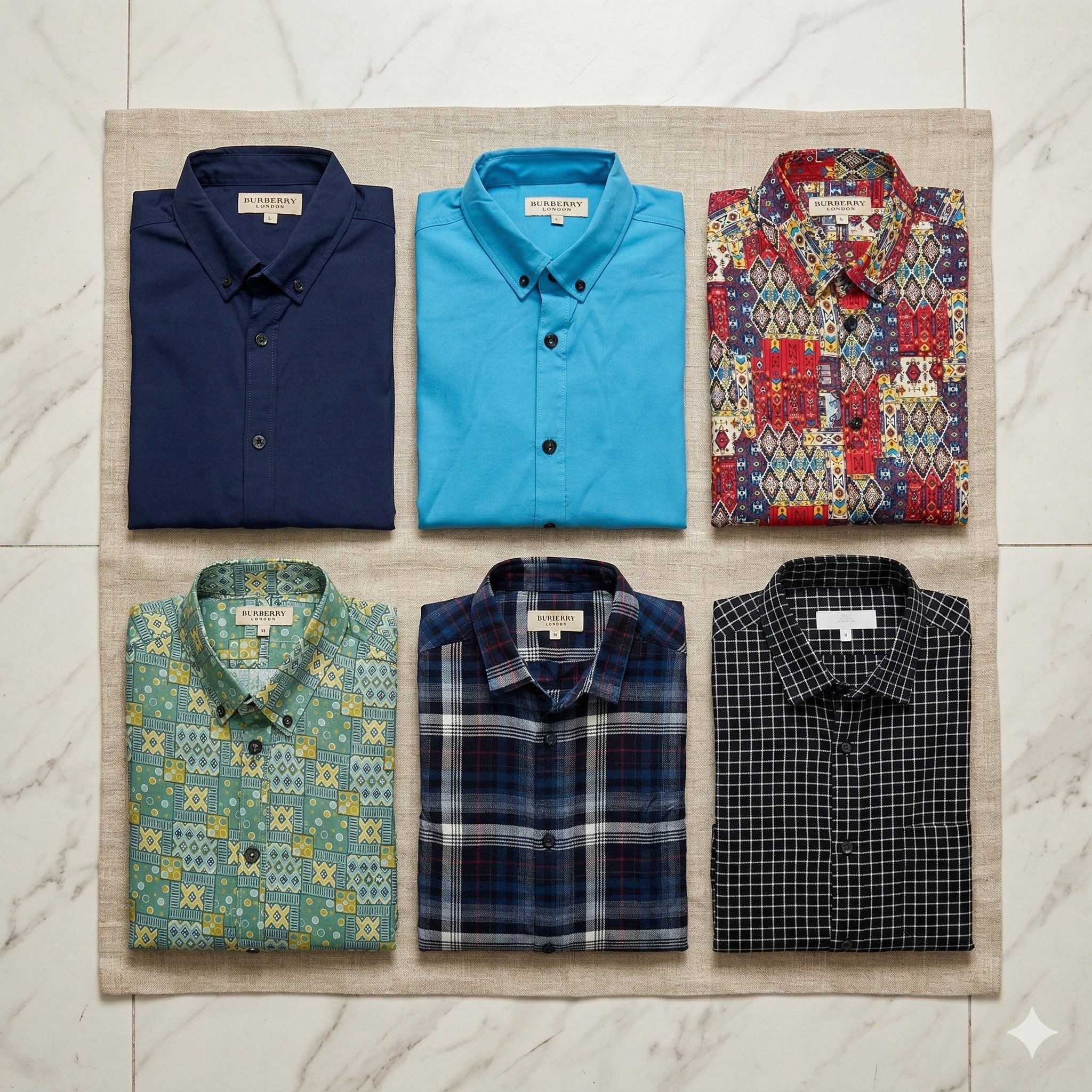 এই কম্বোতে পাচ্ছেন — ২ পিস সলিড কালার, ২ পিস চেক এবং ২ পিস প্রিন্ট শার্ট।